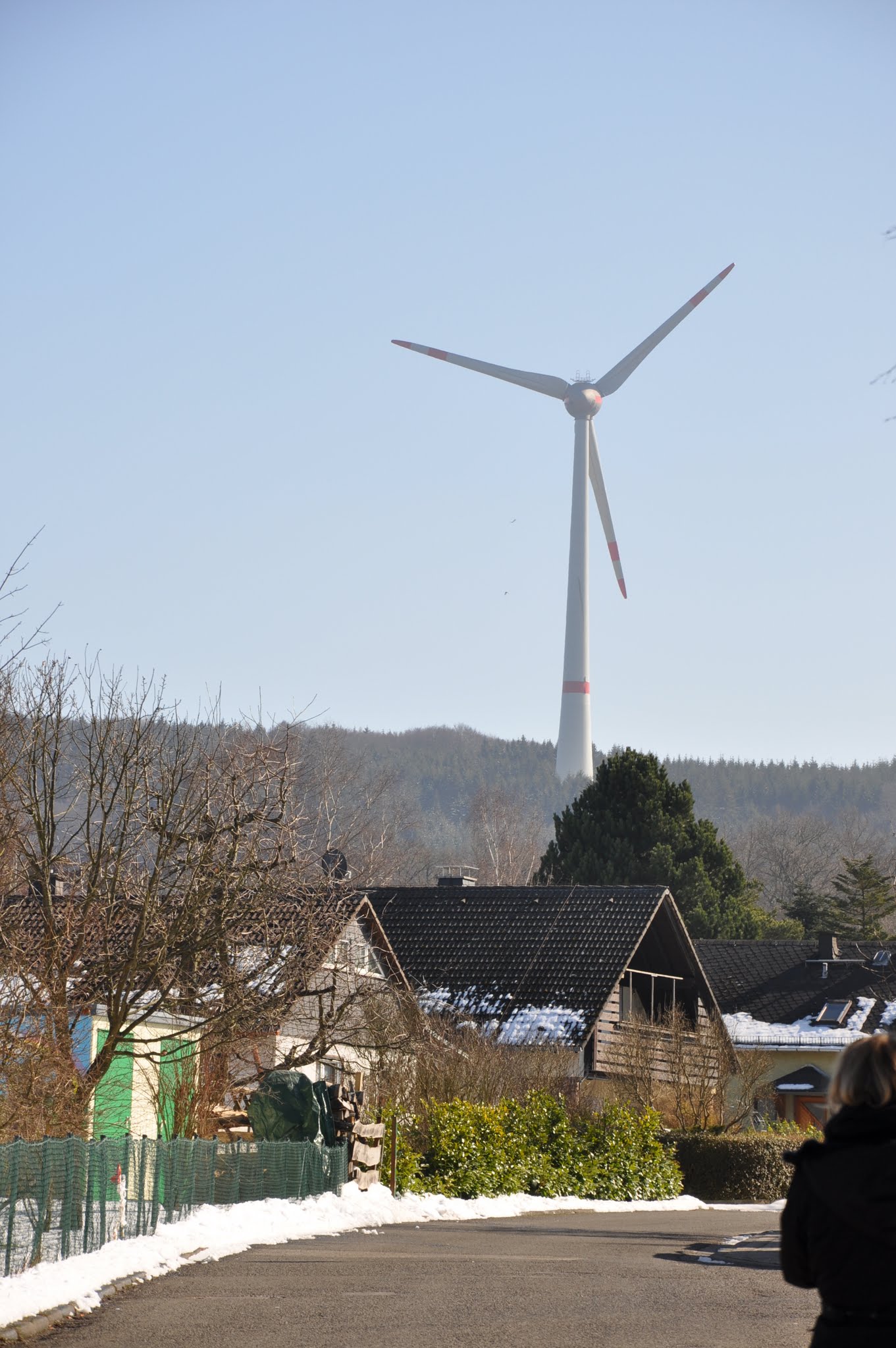 Leider herrschte nur sehr wenig Wind, nur eine Anlage war überhaupt in Betrieb, so dass man die Schall- und Infraschallbelastung, die von den Anlagen bei stärkerem Wind ausgeht, nicht durch eigene Wahrnehmung erfahren konnte. Die Mitglieder der Initiative Soonwald e.V. berichteten jedoch anschaulich von den Auswirkungen. Eine Dame, die vor einigen Jahren ein Forsthaus gekauft und renoviert hat, und dort ungefähr tausend Meter entfernt von der ersten Anlage lebt, schilderte, dass ihr Mann nachts mit Herzrasen aufwacht, wenn der Wind stärker weht, weil der niederfrequente Schall den Herzrhythmus beeinflusst. Sie selbst ist in der Lage die Windrichtung allein aufgrund der Beeinträchtigung, die sie durch den Infraschall spürt, zu bestimmen.