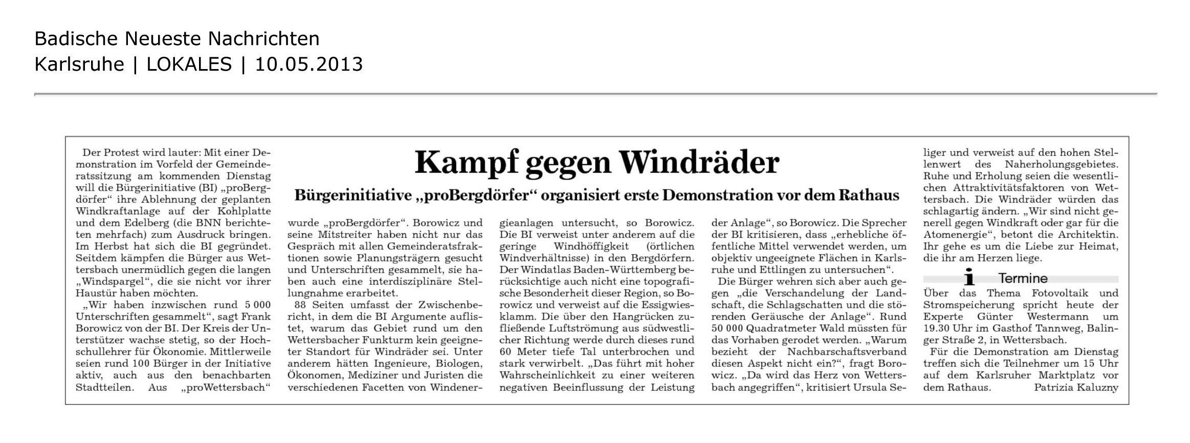Aus der BNN vom 10.5.2013