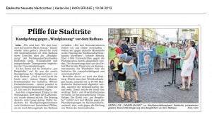 Gegen die Planungen der Konzentrationsgebiete protestierten etwa 200 Demonstranten vor dem Karlsruher Rathaus. Zu Demonstration aufgerufen hatte die BI “Pro Bergdöfer”.