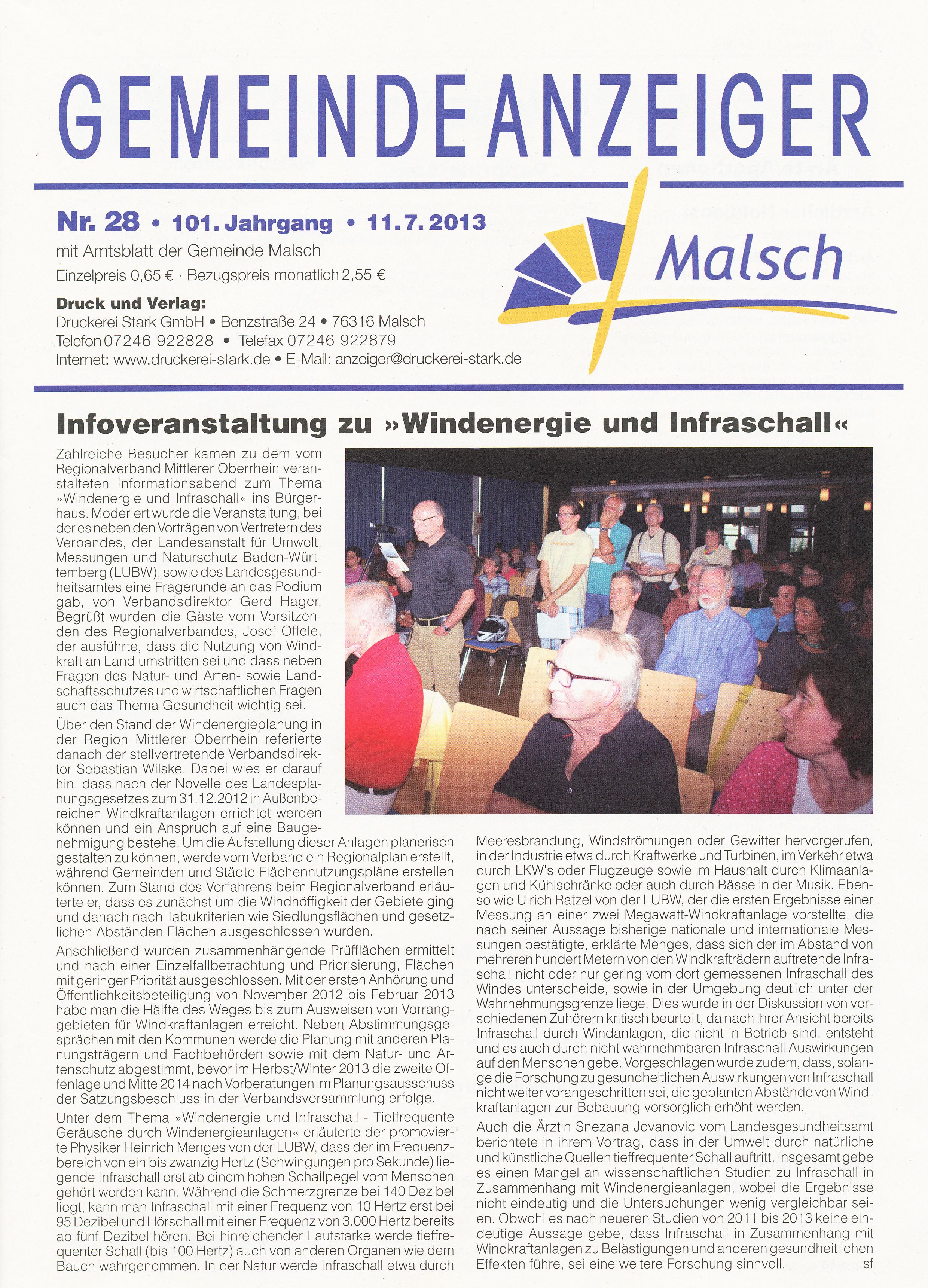 Infoveranstaltung zu “Windenergie und Infraschall”