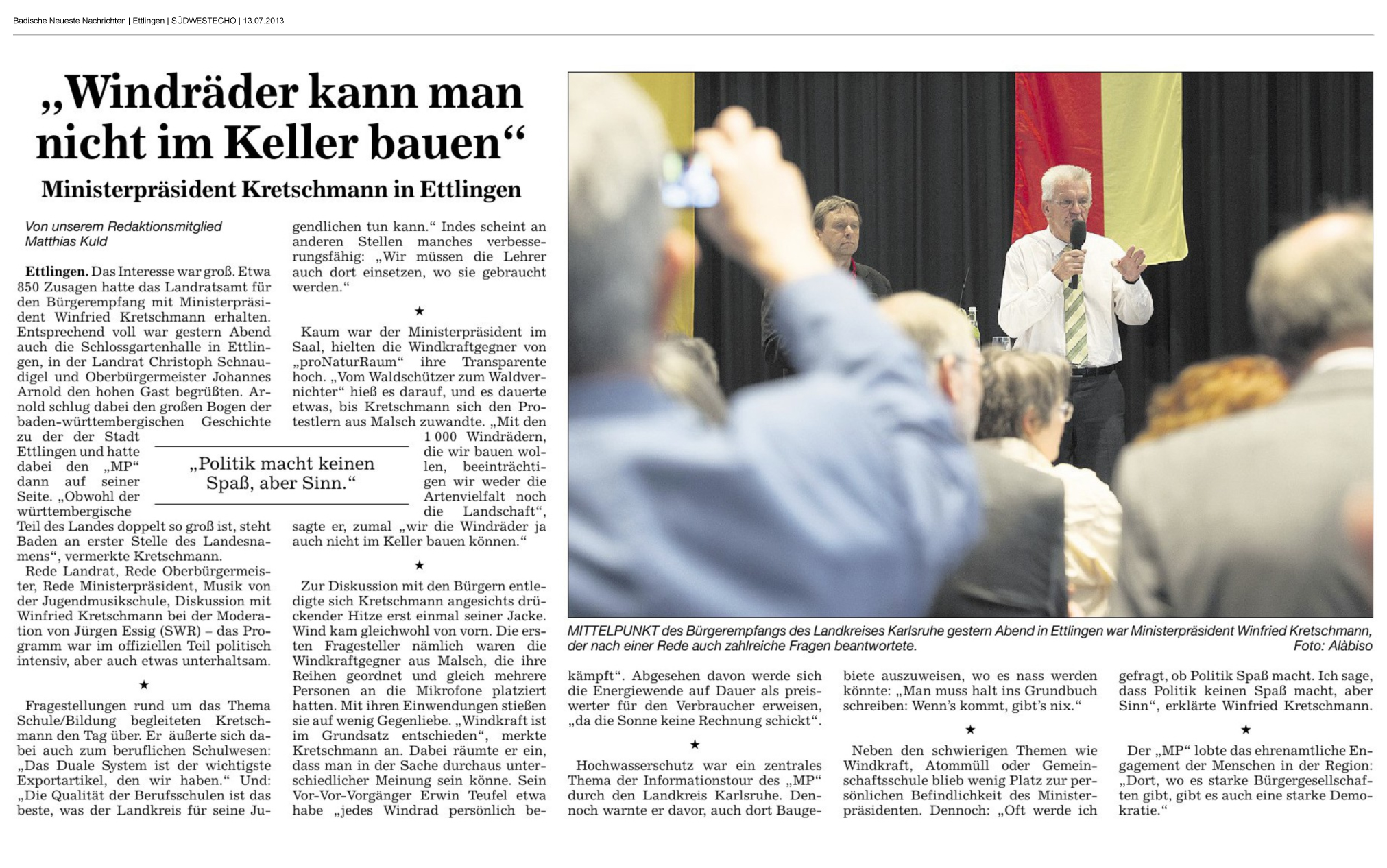 Aus der BNN vom 13.7.2013