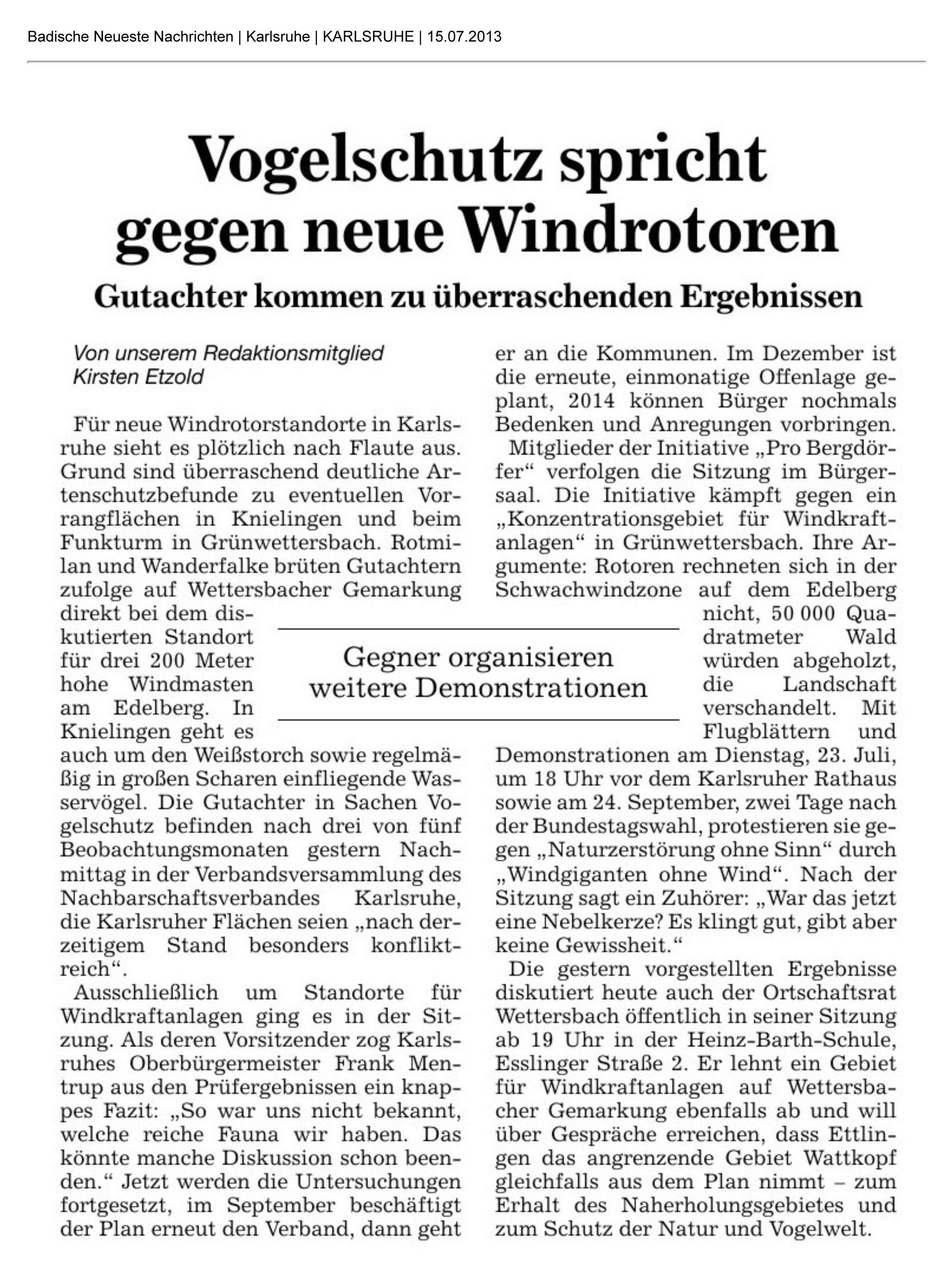 Aus der BNN vom 15.7.2013