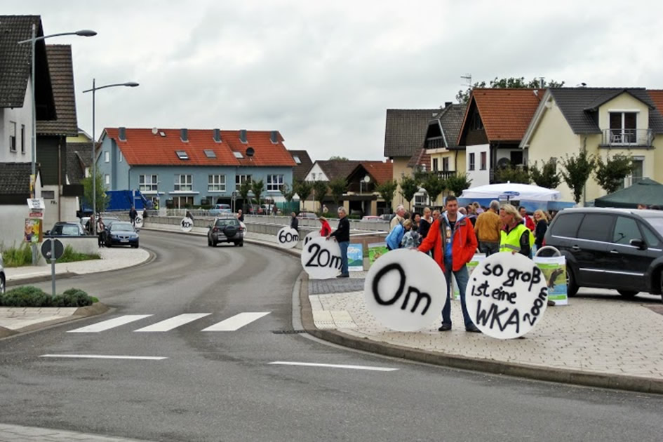 Auch die Bürgerinitiative proNaturRaum nahm eine Stunde lang bis 11.55 Uhr an der Aktion teil. Entlang der Sezanner Straße in Malsch positionierten sich Mitglieder der Initiative, um den Mitbürgern die Ausmaße moderner Windkraftanlagen mit einer Höhe von 200 m aufzuzeigen. Etwa 100 Passanten informierten sich über die aktuellen Entwicklungen der Energiepolitik wie auch über den aktuellen Sachstand der Planungen in Malsch.
