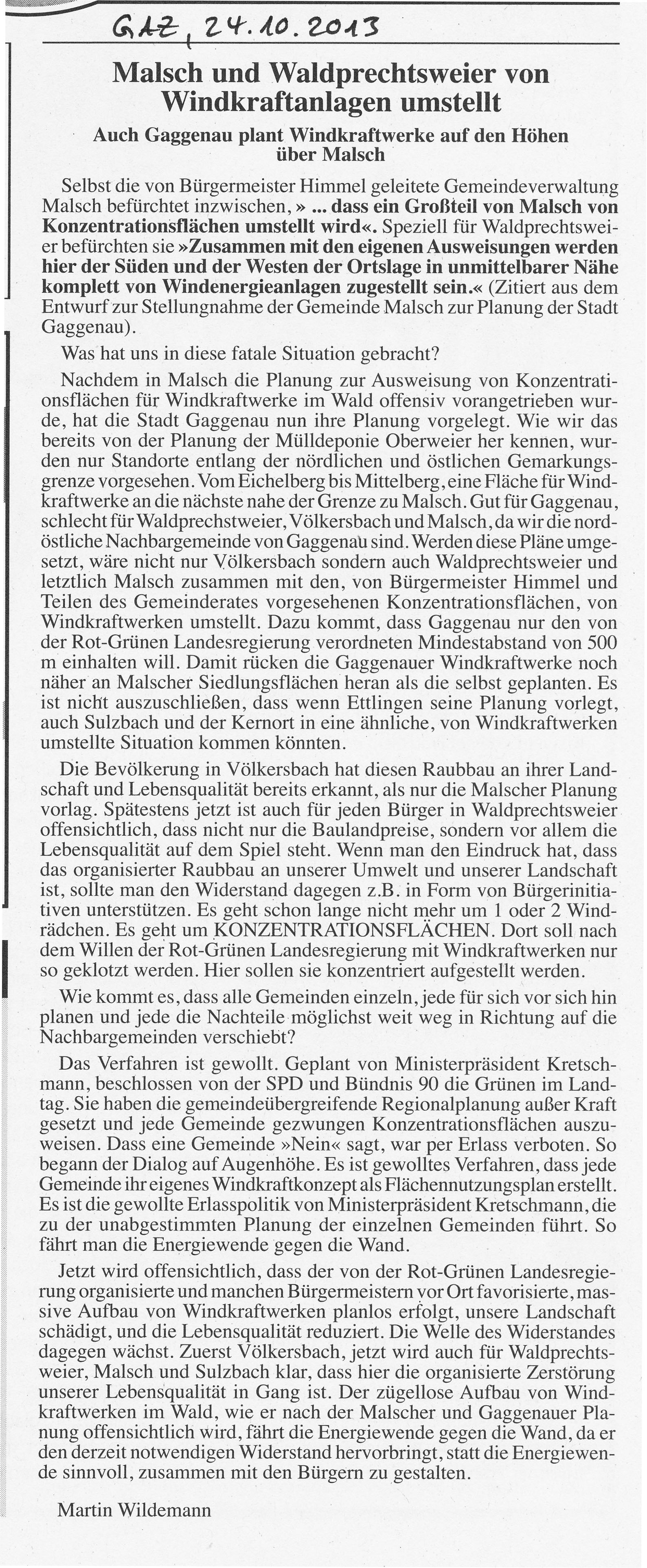 Leserbrief von Martin Wildemann aus GAZ vom 24.10.2013