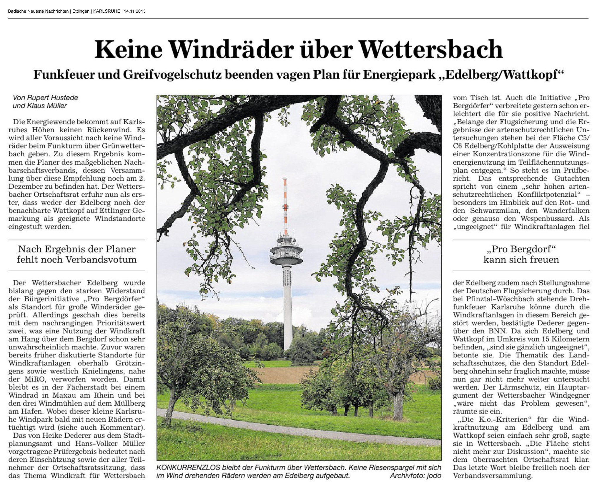 16. November 2013 Keine Windräder über Wettersbach / Verweht Funkfeuer und Greiffogelschutz beenden vagen Plan für Energiepark “Edelberg/Wattkopf”… mehr Verweht – nach Fukushima brach weltweit ein Sturm der Entrüstung los …mehr Mit freundlicher Genehmigung der BNN