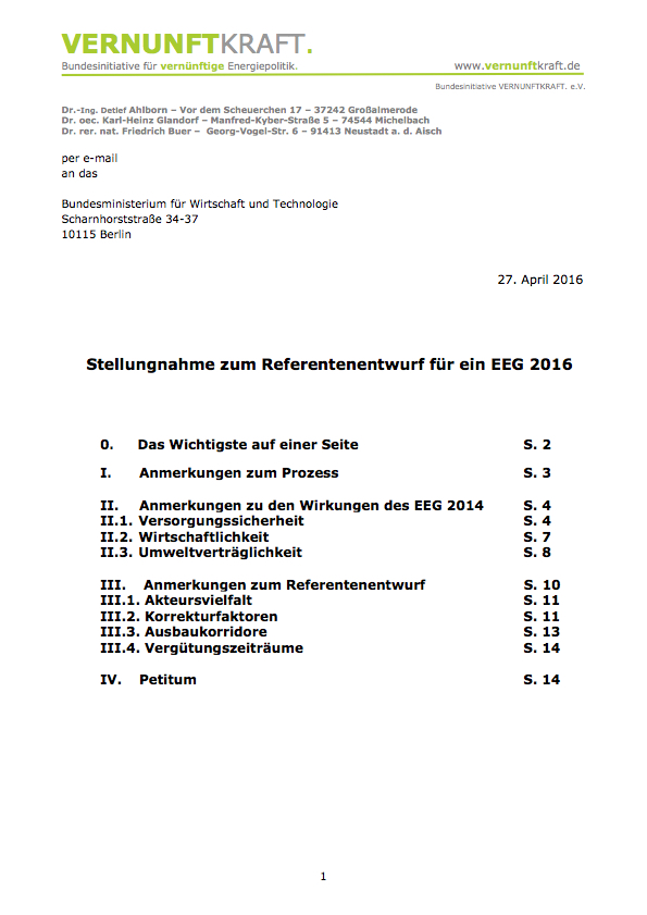 13. Mai 2016 Stellungnahme von Vernunftkraft zum Referentenentwurf für ein EEG 2016 ……gesamten Artikel lesen