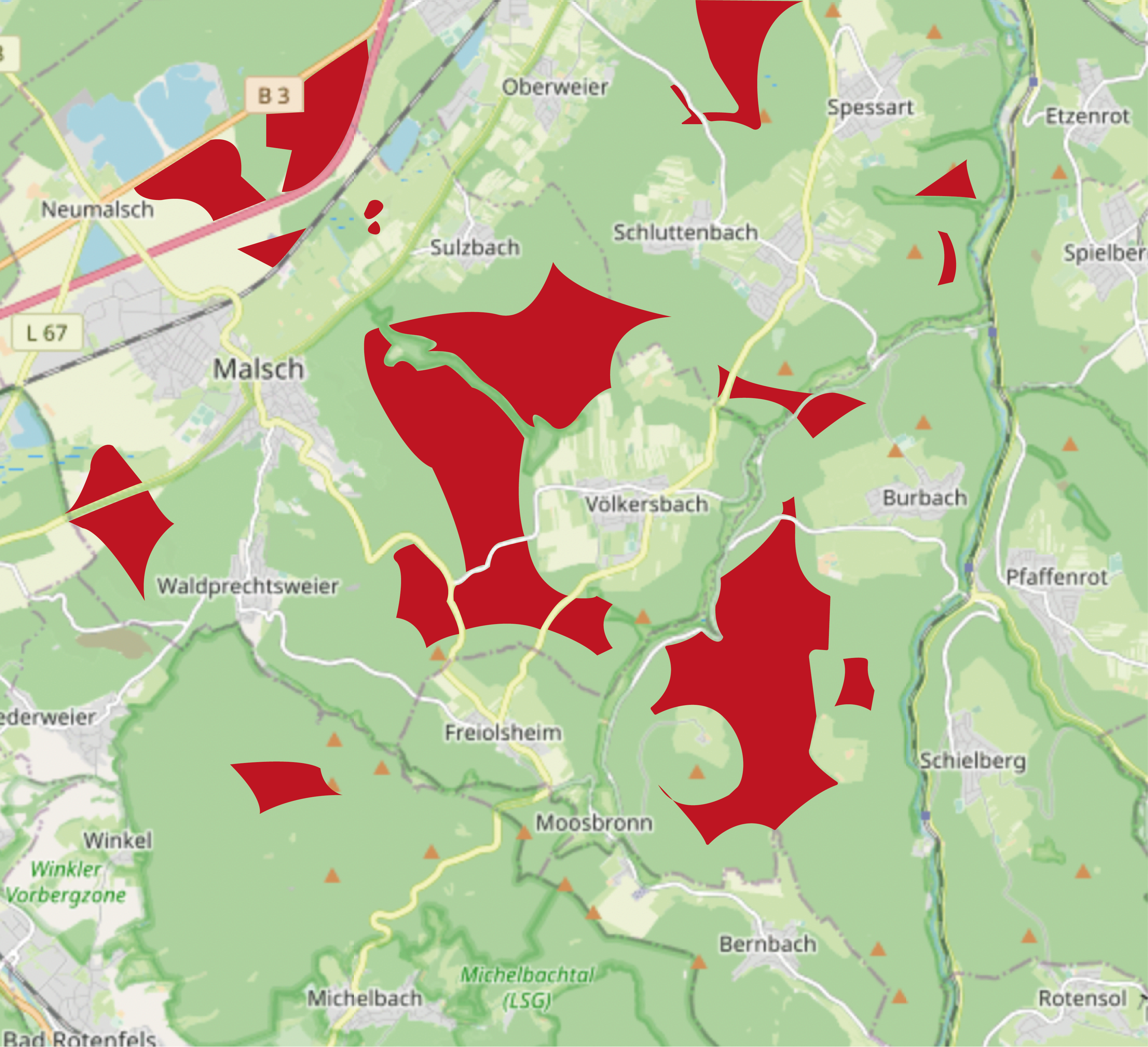 Für Malsch und Freiolsheim sieht diese Suchraumkarte erschreckend aus. Rund 15 Prozent des Gemeindegebiets von Malsch sind als Suchraum ausgewiesen. Selbst wenn noch eine Reduzierung erfolgen sollte ist klar, dass im Malscher Wald sehr viele Vorranggebiete für Windkraft ausgewiesen werden und damit der Druck auf die Gemeinde bzw. die Eigentümer steigt, Windkraft zu ermöglichen.